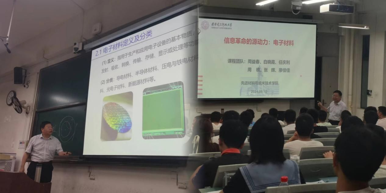 该门课程抓住电子材料学科“科学与工程结合、多学科交叉的属性”,在课堂普及电子材料知识的同时,注重理论与实践相结合。结合电子材料领域的前沿技术和研究热点,邀请专家讲座和进行实际案例分析,帮助学生掌握电子材料的基础知识和最新发展动态,拓展学生视野。目前该门课程已于今年9月份开课,240名本科生修读该门课程。根据课程教学内容安排,后续将陆续邀请包括中国空间技术研究院、中国电科集团相关研究所的知名专家开展系列讲座。同时课程中将开展小组研讨,最终将引领学生思考并撰写以“2049年以何种电子材料开展通信、雷达、计算机、人工智能研究”“教育强国,西电何为?”等为主题的报告作业。
