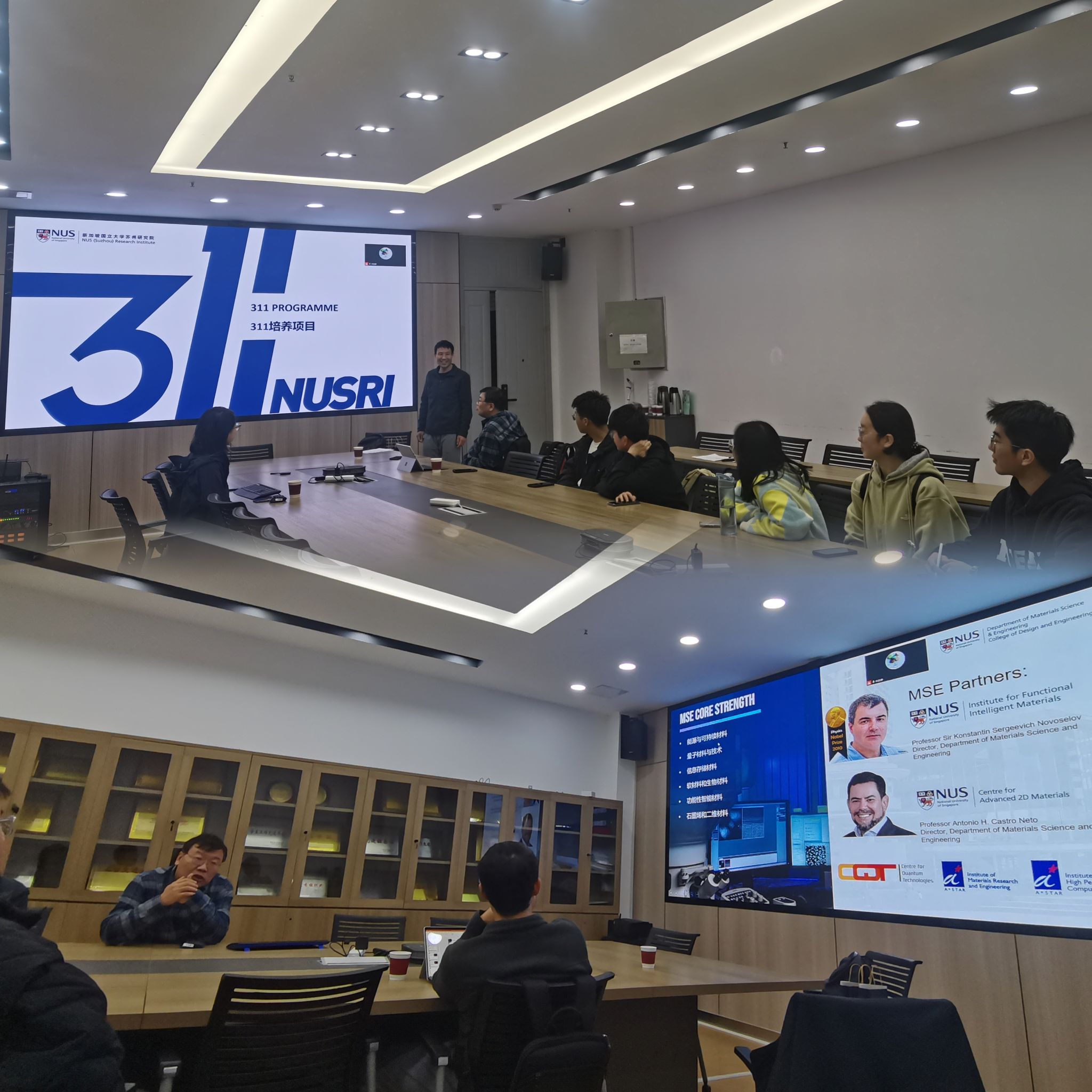 在南校区 G-142 会议室成功举行了2025年新加坡国立大学(以下简称“新国大”) “3+1+1” 联合培养项目宣讲会。新国大材料科学与工程系副主任、教授,新国大苏州研究院和新国大重庆研究院首席研究员陈景升、新国大苏州研究院教育办公室朱燕婷及WG电子