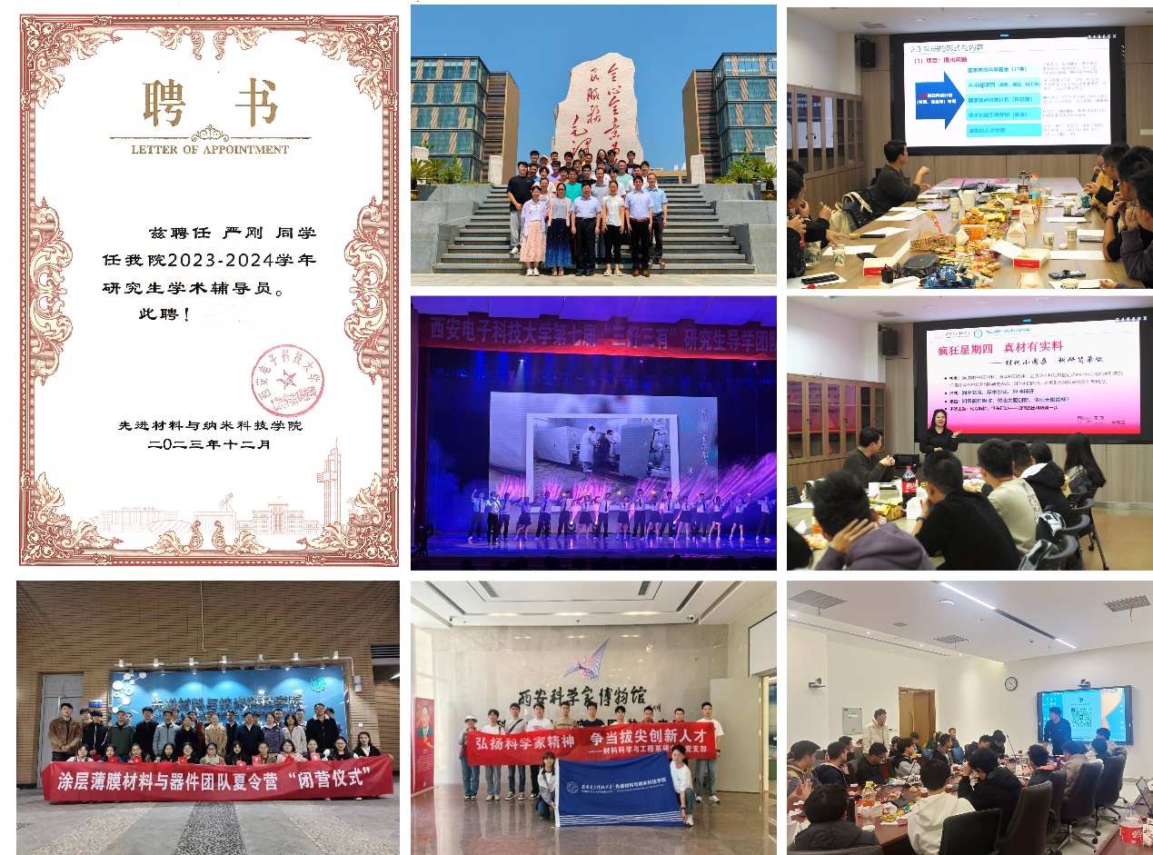 、师门贡献自己的青春力量。作为涂层薄膜材料与器件课题组的大师兄,他统筹安排实验室的搭建、管理以及规范化的运行,并及时解决各类实验室安全问题;协助导师管理课题组的日常,包括组会讨论、学生考勤、文娱团建等。事无巨细,事必躬亲,师弟师妹的求助他都能报以最真诚的帮忙和回馈。此外,严刚积极参与课题组“三好三有”研究生导学团队的申报评选工作,加强和老师同学的交流,提高团队合作能力。他曾前往全国各地高校进行研究生招生宣传,并组织开展了“优秀科研人才选拔计划”夏令营活动。由于出色的交流能力和稳重的做事风格,他被受聘为WG电子
